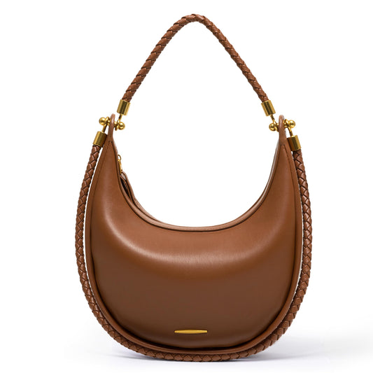 Joryin Crescent Shoulder Bag for Women, Saddle Purse Braided Top-Handle Handbag Vegan Leather Under Arm Bag Brown