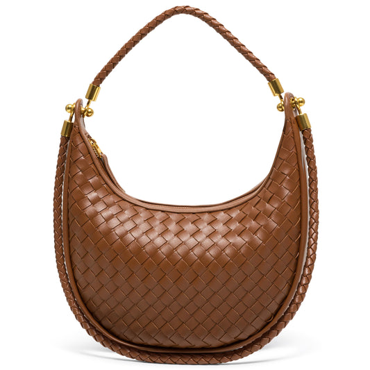 Joryin Woven Leather Crescent Shoulder Bag for Women, Saddle Purse Braided Top-Handle Handbag Under Arm Bag Woven Brown