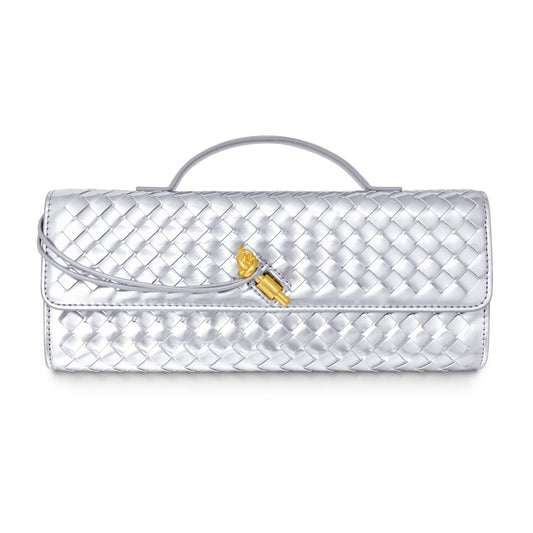 Woven Purse for Women Evening Clutch Woven Leather Handbags Crossbody Bag Formal Evening Bag Light Gray Woven Leather