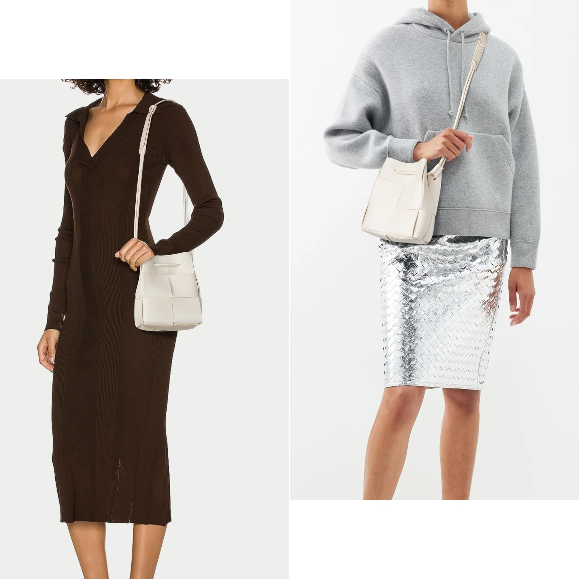 - Trendy Hand-Woven Leather Crossbody Bag: Constructed with double-layer vegan leather, it exudes a soft yet robust quality that ensures it maintains its shape gracefully throughout extended use. This clutch purse seamlessly combines the features of a bucket crossbody purse and a hobo bag, elevating your outfit and making you stand out in any crowd. Whether it's a casual day out or a special occasion, this bag is your style companion.